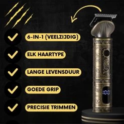 Op zoek naar een tondeuse en baardtrimmer in 1 waarmee je het kapsel en je baard kunt trimmen, scheren en eindeloos kunt stijlen in verschillende modellen? Dan is de Sansbeauté® Tondeuse Baardtrimmer een perfecte investering voor jou! Dit model is voorzien van 9 (!) kwalitatieve opzetkammen waarmee je het haar makkelijk kunt stijlen in verschillende lengtes! Met de 6 verschillende opzetstukken heb je in één klap alle benodigdheden in huis, dus ook financieel aantrekkelijk! Door de verwerking van een LED-display kun je nu makkelijk aflezen wanneer je moet reinigen en opladen! Door de krachtige accu kun je maar liefst 3 uur lang trimmen zonder onderbrekingen! Ook is de kop volledig waterproof waardoor een snelle reiniging onder de kraan een feit is! En als kers op de taart krijg je er ook nog een opbergzak en kam bij! Dus waar wacht je nog op? Investeer nu in de Sansbeauté® Tondeuse Baardtrimmer en geniet elke dag van een perfecte look!