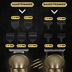 Onze Tondeuse Baard Trimmer opzetstuk wordt geleverd met 4 verschillende opzetkammen (1.0mm 3.0mm 5.0mm 7.0mm 16.0mm) en het haatrimmer opzetstuk met 5 verschillende opzetkammen (3.0mm 6.0mm 9.0mm 12.0mm 15.0mm)! Deze dodelijke combinatie maakt elke fade en haarstijl mogelijk!