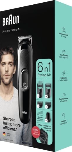 6-in-1: de Braun MGK3 baardtrimmerset voor mannen trimt elke haarlengte van baard tot gezicht, tot hoofd
