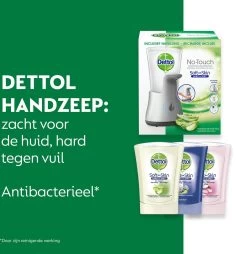 Dettol No-Touch Automatische Zeepdispenser is een hygiënische zeeppomp die de verspreiding van bacteriën tegengaat. De zeepdispenser lokaliseert automatisch uw handen, waardoor u de pomp niet hoeft aan te raken. No-Touch Automatische Zeepdispenser houdt de handen schoon en beschermd. De antibacteriële handzeep bevat aloë vera voor een frisse geur en een gehydrateerde huid. Dermatologisch getest. Door uw kinderen te leren dat ze hun handen grondig moeten wassen en dat ze de juiste hygiënereflexen moeten aannemen, helpt u uw hele gezin om gezond te blijven. De Dettol No- Touch zeepdispenser helpt op een creatieve manier te beschermen tegen bacteriën. Uw handen worden automatisch gedetecteerd en een dosis zeep wordt vrijgegeven. Dettol- Zacht voor de huid, hard tegen vuil en bacteriën.