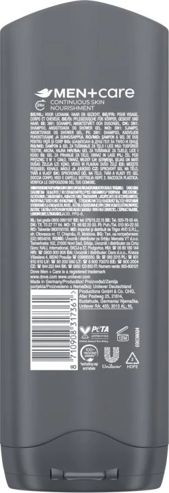 Dove Men+Care wil bijdragen aan een betere wereld. Dove Men+Care 3-in-1 Douchegel wordt verpakt in 100% gerecyclede plastic flessen*. Dove Men+Care test wereldwijd niet op dieren en is door PETA gecertificeerd als ‘Cruelty-Free’.