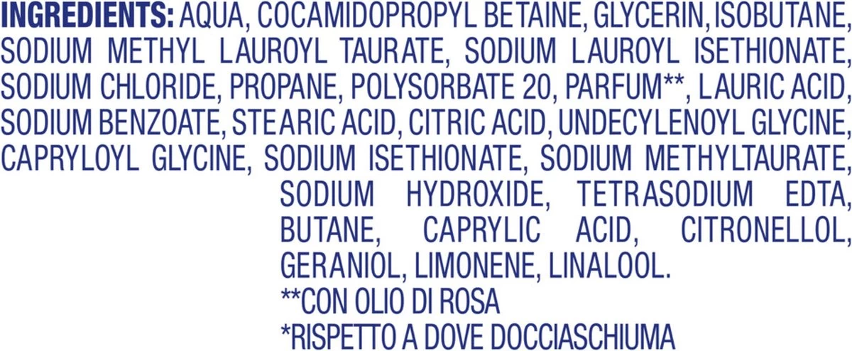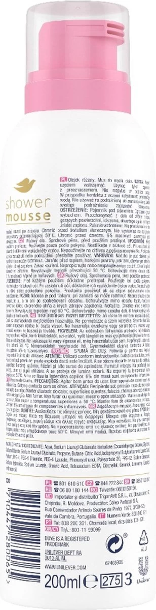 Hoe gebruik je het? Dove Rose Oil Shower Mousse is geschikt om mee te douchen en te scheren. Goed schudden voor gebruik. Spuit dan een ruime hoeveelheid mousse op je hand en verdeel het over je lichaam. De mousse spoelt makkelijk af en geeft de huid een schoon en zacht gevoel. Geniet vooral van dit heerlijke verwenmoment!