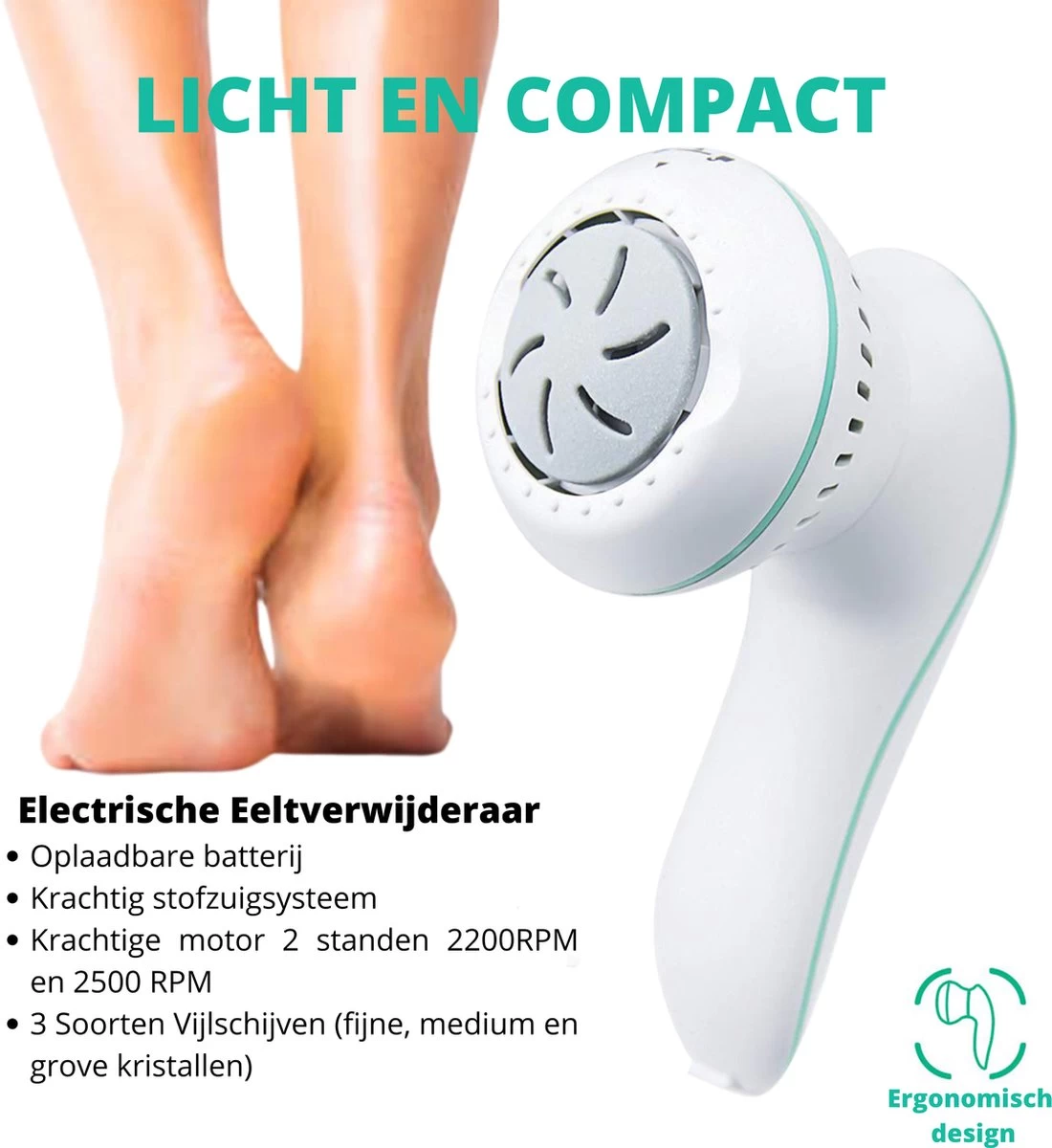 Wil jij ook mooie zijdezachte eeltloze voeten? Deze professionele elektrische eeltverwijderaar van Forgoods met krachtige motor verwijdert je eelt pijnloos binnen enkele seconden. De elektrische voetvijl heeft een ingebouwd stofzuigsysteem, zodat de losgekomen dode huidschilfers automatisch worden opgezogen. Dus geen rommel op de grond, maar wel heerlijke verzorgde voeten. De eeltverwijderaar is USB oplaadbaar, inclusief stekker en een extra set vijlen.