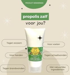 De zalf van Bijenhof kan gebruikt worden tegen exceem, schaaf en brandwonden, barsten in de handen en voeten, schimmels, kloven, jeuk en spierpijn.