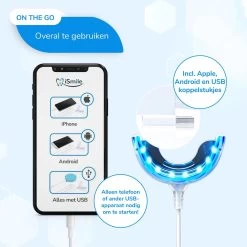 iSmile® biedt een werkend, kwalitatief & veilig alternatief om vanaf nu zelfverzekerd met een brede glimlach door het leven te gaan. Simpelweg door het gebruik van de iSmile Professionele Tandenbleekset. Het bleken van tanden is nog nooit zo gemakkelijk en voordelig geweest. Draai de iSmile whitening gelpen welke voldoet aan alle Europese veiligheidsnormeringen om en breng aan op de tanden. Connect vervolgens gemakkelijk met zowel jouw Apple of Android telefoon en laat de behandeling zijn werk doen. Gemakkelijk in de privacy van je eigen huis of lekker on the go.