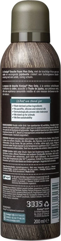 De Kneipp® douche schuim For Men Ceder-Jojobaolie biedt met een stoere mannelijke geur van verse ceder en kostbare jojobaolie een uitzonderlijke douche-ervaring. De gel verandert in een romig schuim als deze in aanraking komt met water.