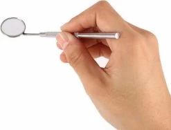 Deze premium tandarts mondspiegel is gegoten uit duurzaam en corrosie bestendig RVS. De spiegel is sterk gebogen om de tanden zeer gedetailleerd te kunnen bekijken.