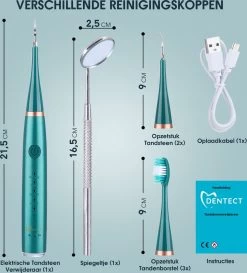 Merkloos Tandsteen Verwijderaar Elektrisch Dentect – Tandenborstel Opzetstukken – Tandarts Spiegel – 5 Standen – Groen