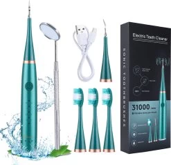 Merkloos Tandsteen Verwijderaar Elektrisch Dentect – Tandenborstel Opzetstukken – Tandarts Spiegel – 5 Standen – Groen