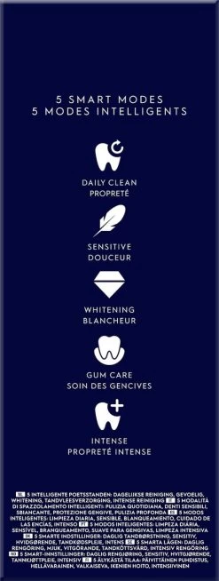 • 5 slimme poetsstanden om je poetsbeurt te personaliseren: Dagelijkse reiniging, Gevoelige tanden, Tandvleesverzorging, Intense reiniging, Whitening
