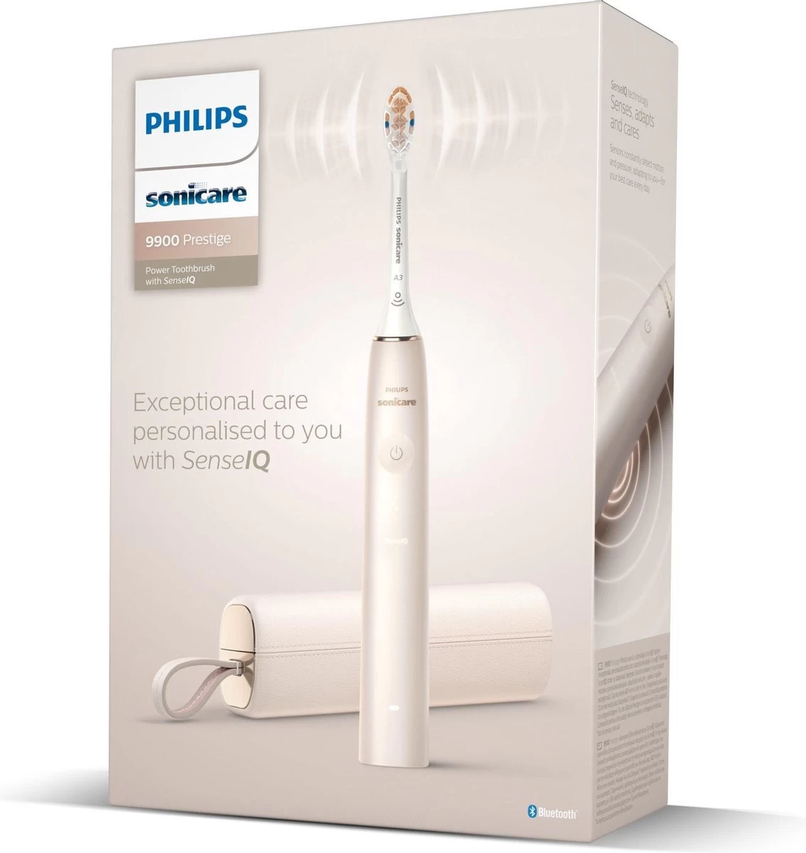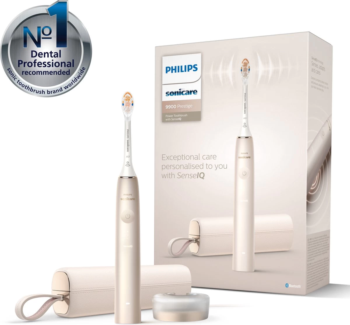 De meest geavanceerde elektrische tandenborstel van Philips is de Sonicare 9900 Prestige met SenseIQ-technologie. Deze Philips elektrische tandenborstel biedt allerlei gepersonaliseerde functies en weet precies wat je nodig hebt. Onze bewezen sonische technologie wordt aangevuld met intelligentie: de tandenborstel detecteert de omstandigheden en past zich aan voor holistische verzorging.