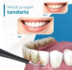 Deze tandsteenverwijderaar helpt je om je tanden en tandvlees de zorg te geven die ze verdienen. Druk op de knop en start gelijk met reinigen. De tandsteenverwijderaar maakt gebruik van dezelfde supersonische triltechniek met maarliefst 21.000 slagen per minuut, net als professioneel apparatuur van jouw tandarts. Dure en vervelende afspraken bij de tandarts zijn officieel verleden tijd. Want waarom zou je naar de tandarts gaan als je jezelf thuis een Professionele behandeling kunt geven met onze tandsteen verwijderaar.