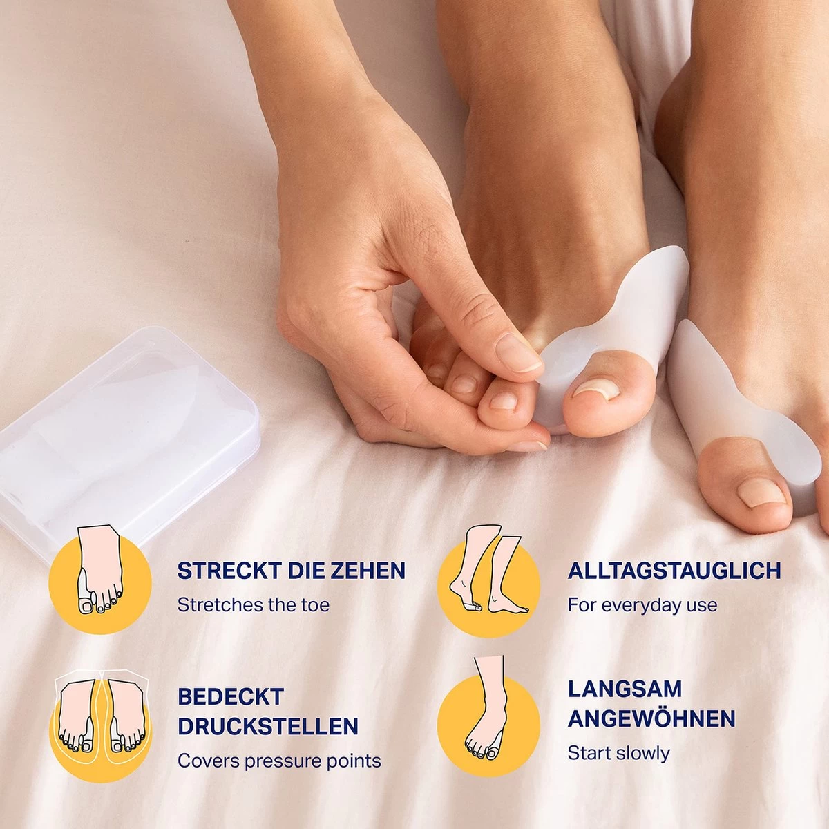 PERFECTE FIT – Dankzij de innovatieve siliconen van zachte gel omhelzen de teenspreiders uw voet ideaal. Dit geeft u het hoogste draagcomfort. Bovendien zorgt de geïntegreerde bunionbescherming voor een stevige grip!