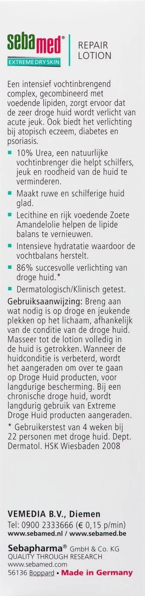 Bodylotion voor de extreem droge huid, bij eczeem, diabetes en psoriasis